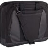 Elegant laptopbag. Tre store rom separert av en vattert sleeve som beskytter laptopen. Flere små rom for oppbevaring av accessories på innsiden. Avtagbar skulderstropp med plass til visittkort. To vatterte håndtak og to store ytterlommer med glidelås. En solid stropp bak gjør det mulig å feste baggen på en trolley.