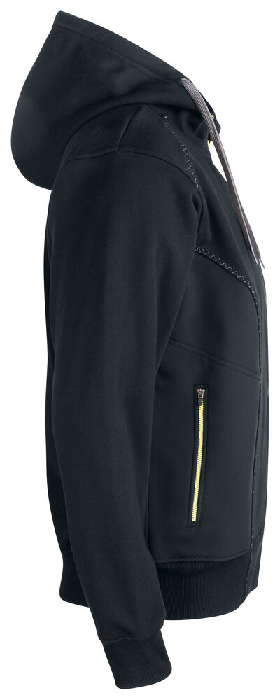 Hood med glidelås. Softshell-forsterkninger i siden. Sidelommer med glidelås.