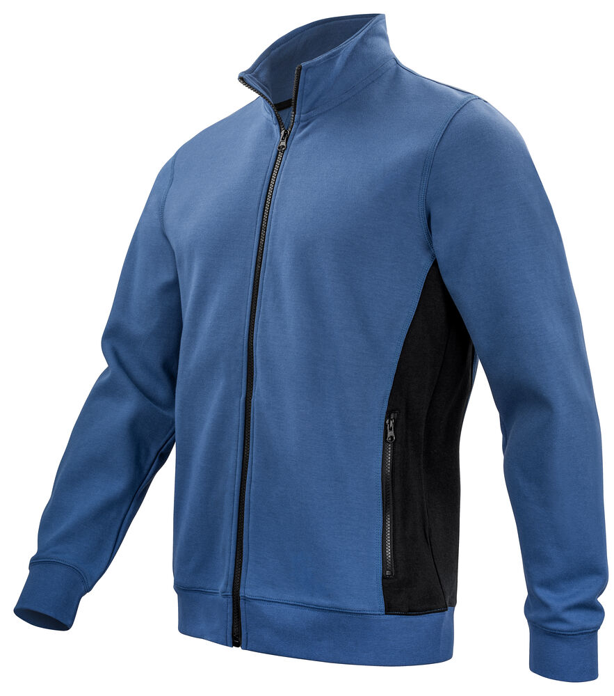 Genser med hel glidelås i front. Kontrastfarge i sidene. Ribb i krage og mansjetter. Sidelommer med glidelås.
