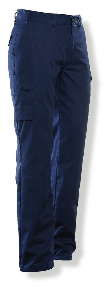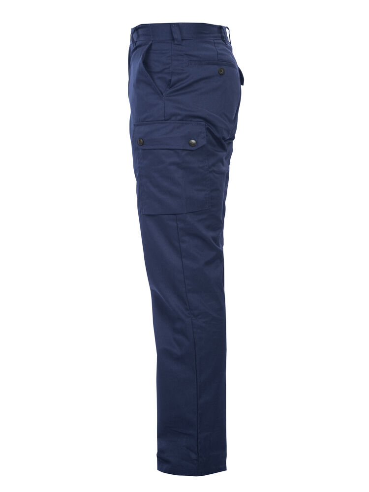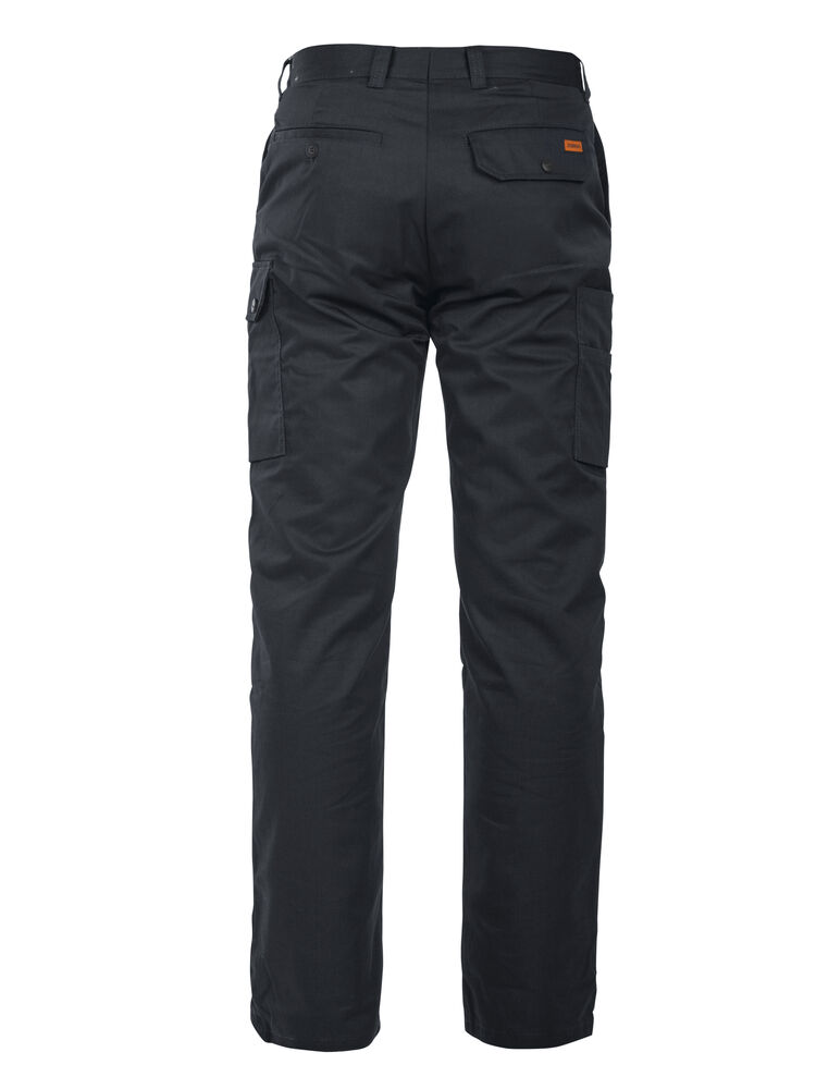 Passer til enklere industriarbeid og serviceyrker som butikk- og lagerarbeid. Lettstelt polyester/bomull. Innsydde frontlommer og baklommer. Benlomme med ekstra rom. Benlomme med klaff og mobiltelefonlomme.