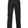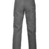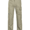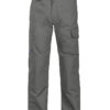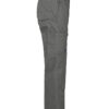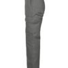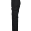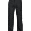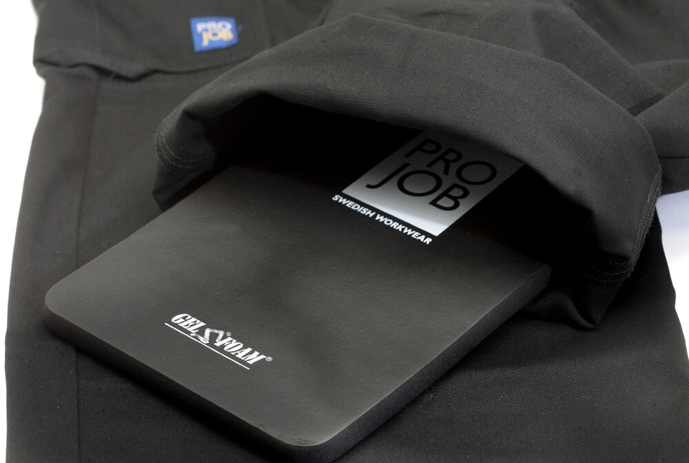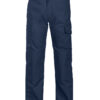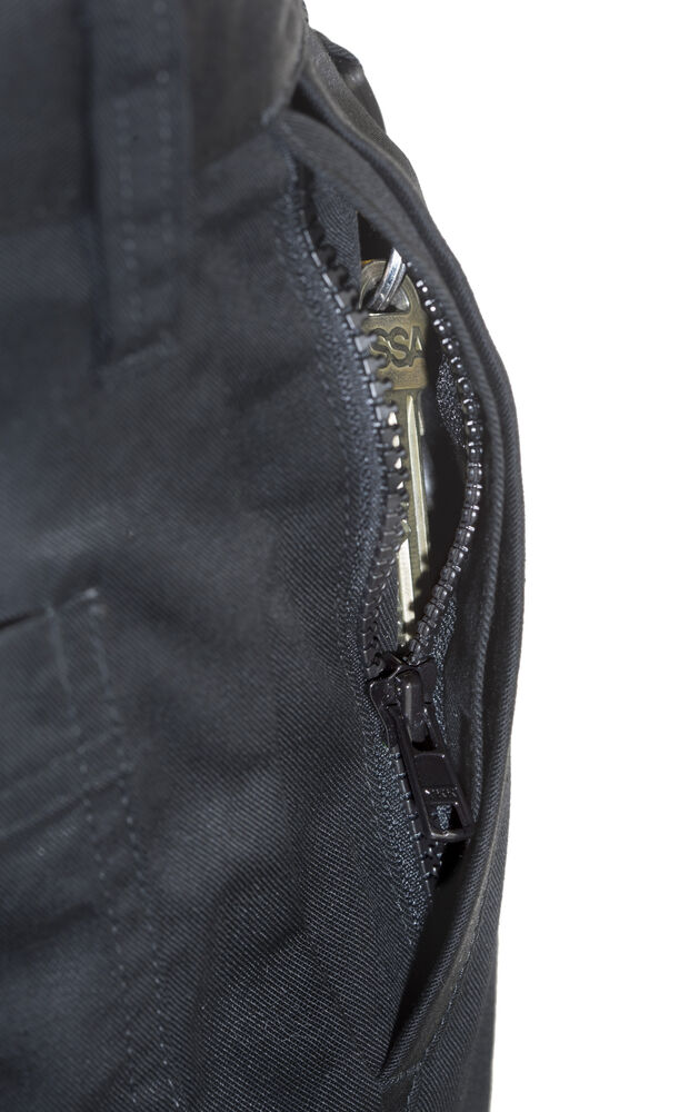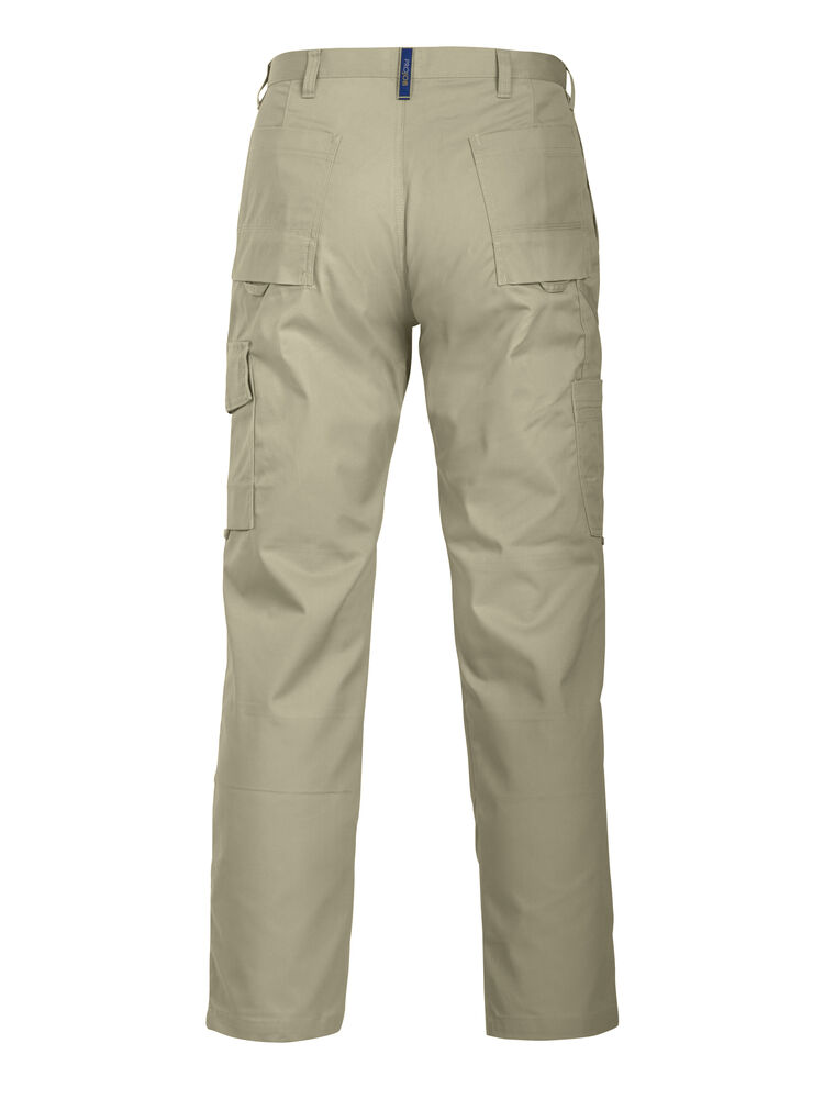 Arbeidsbukse uten fold i front. Sidelommer i front, sikkerhetslomme med glidelås på høyre side. To utenpåliggende baklommer. To benlommer. Venstre benlomme har klaff og mobillomme på innsiden. Høyre Benlomme har plass til mobiltelefon, penner, papir og tommestokk. D-ring for nøkler, ID-kort etc. Innvendige knebeskyttelseslommer. Hemper under baklommer og benlommer for å feste Inbags i.