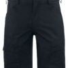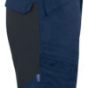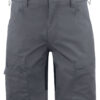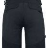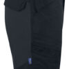 Shorts med stretchmateriale bak over hele setepartiet og i skrittet. To benlommer med glidelås. To baklommer med med klaff. Feste for hengelommer.