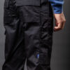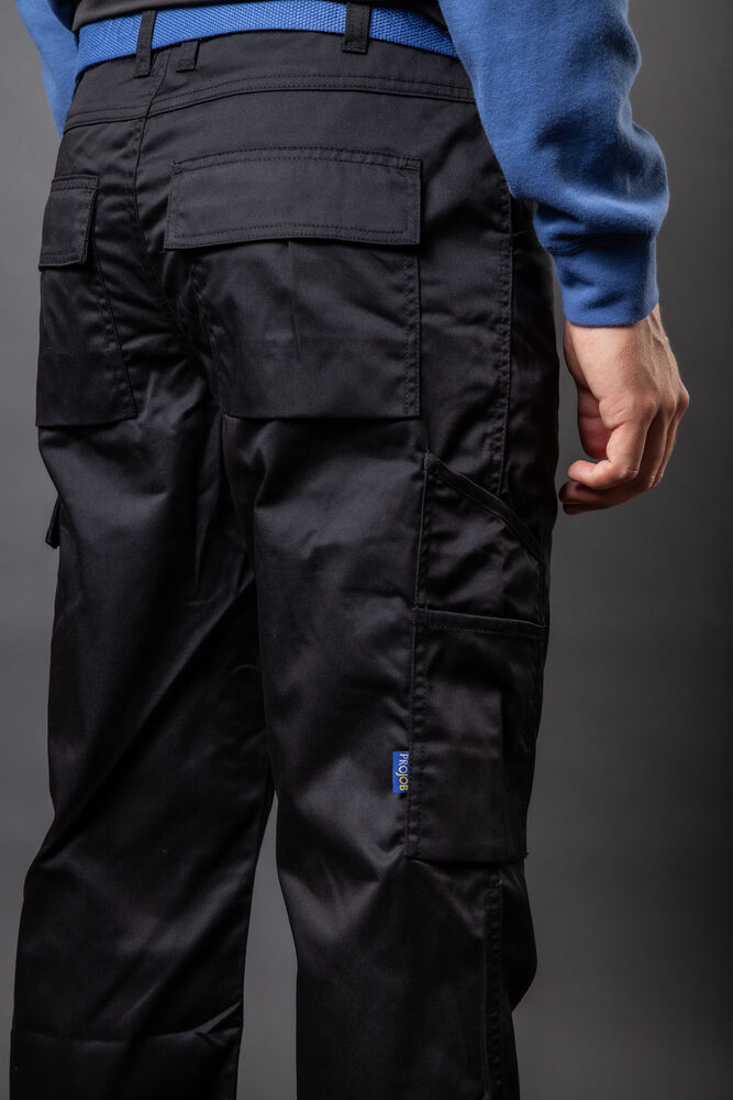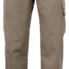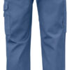 Lettstelt polyester/bomull som beholder farge og form. Romslige framlommer. Baklommer og lårlomme med klaff. Tommestokklomme. C42-64 kan forlenges med 5 cm med en fold nederst på beinet.