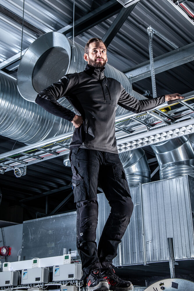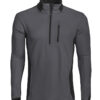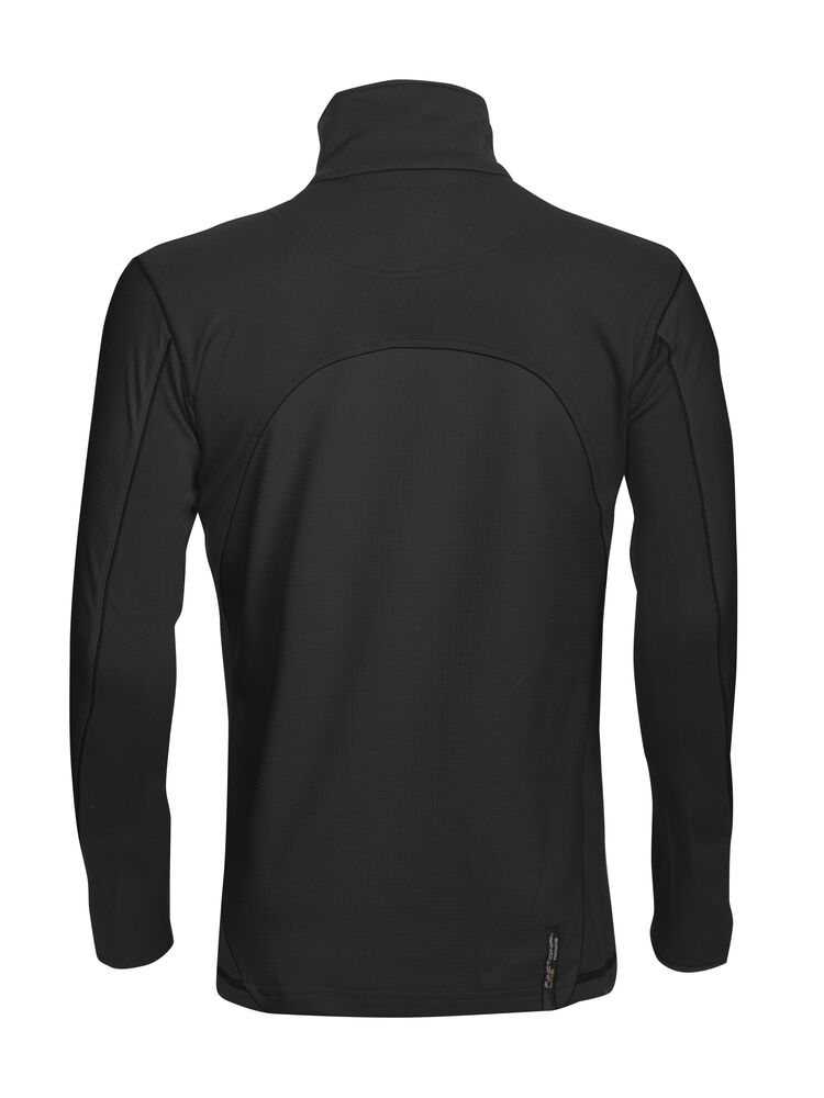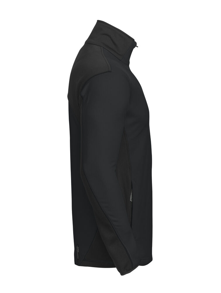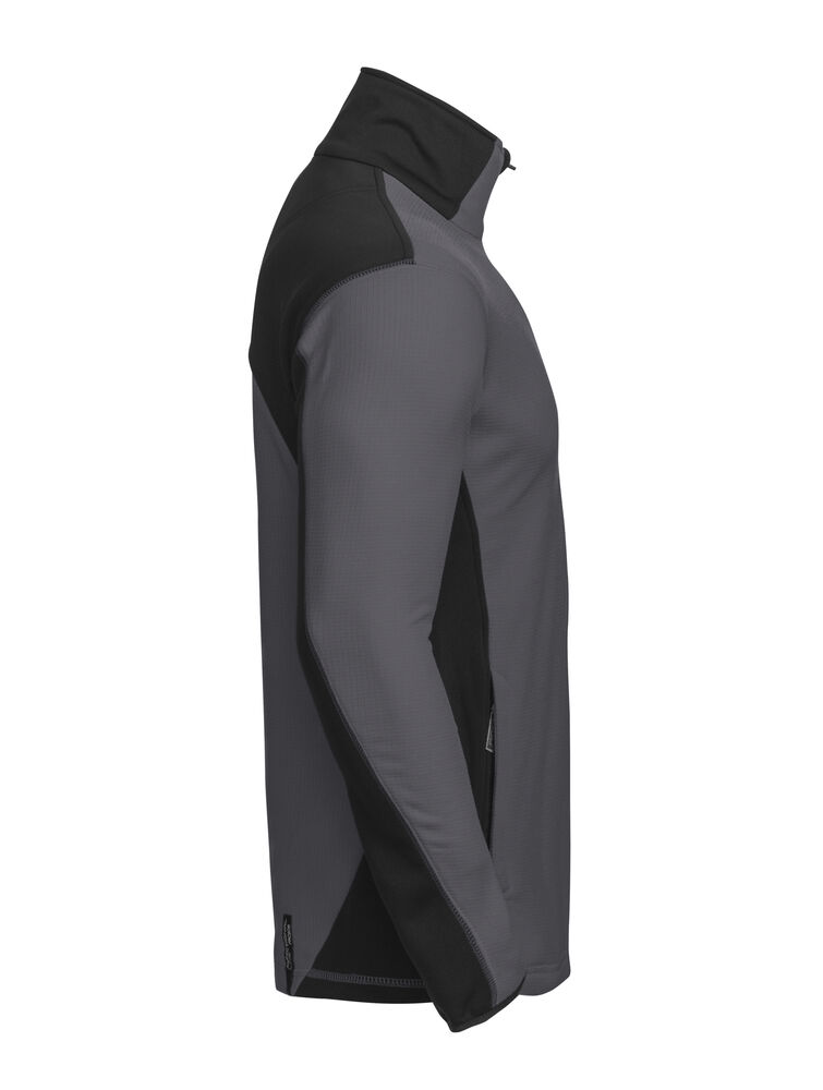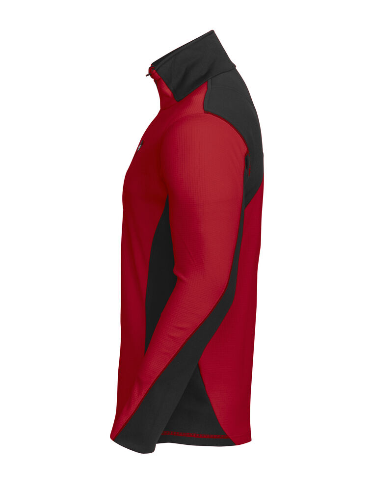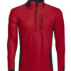 Komfortabel og funksjonell topp med fleecefôret krage. Kort glidelås i front, med glidelåsbeskyttelse for å forhindre gnagsår. Bryst- og sidelomme med glidelås. Farge red-35 og grey-98 har svarte kontraster som gir et kult uttrykk.