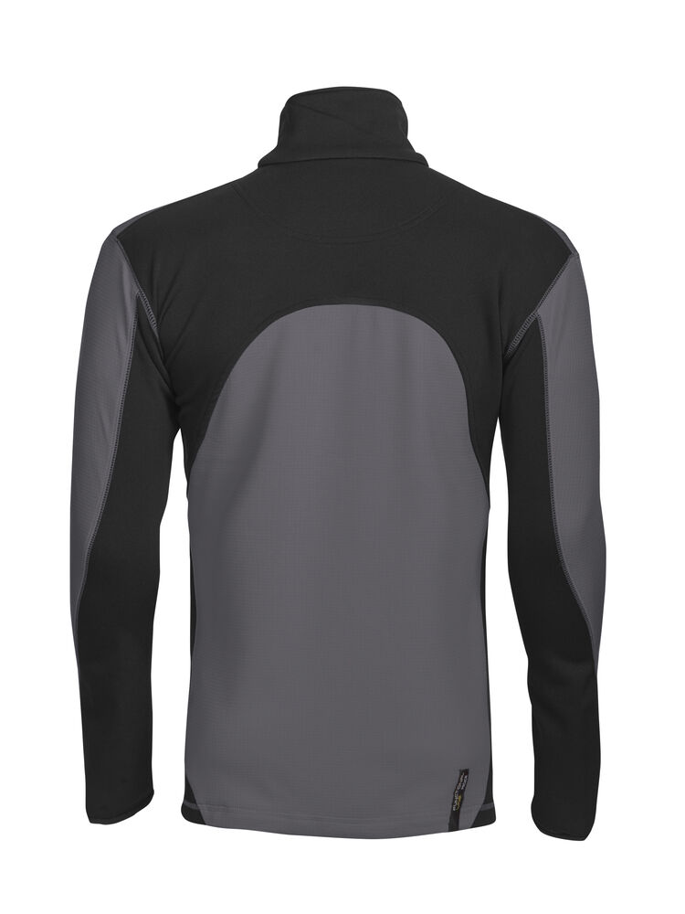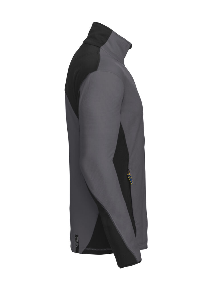 Komfortabel og funksjonell topp med fleecefôret krage. Hel glidelås i front – med glidelåsbeskyttelse for å forhindre gnaging på haken. Bryst- og sidelomme med glidelås. Farge red-35 og grey-98 har svarte kontraster som gir et kult uttrykk.