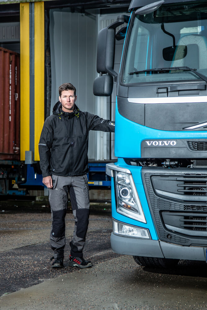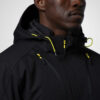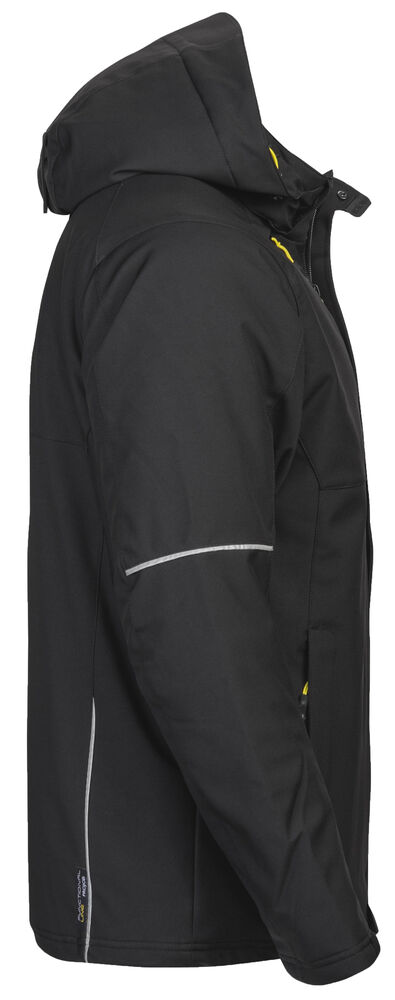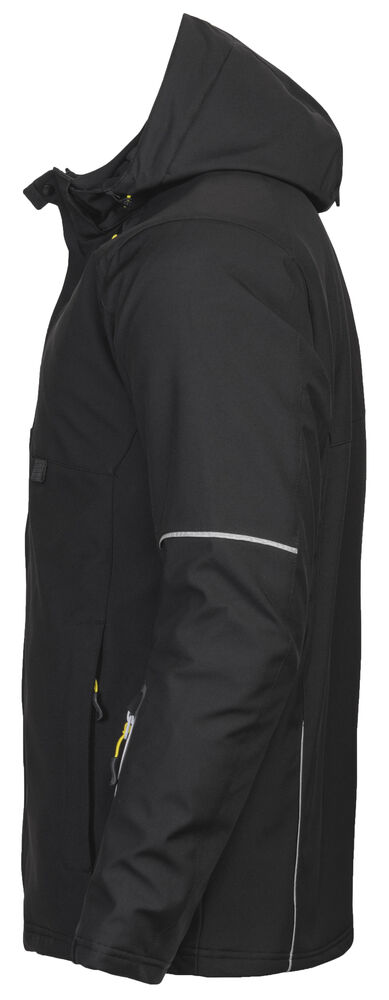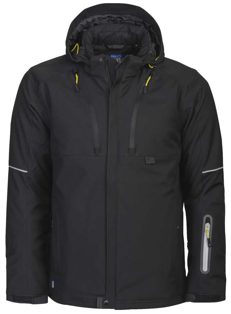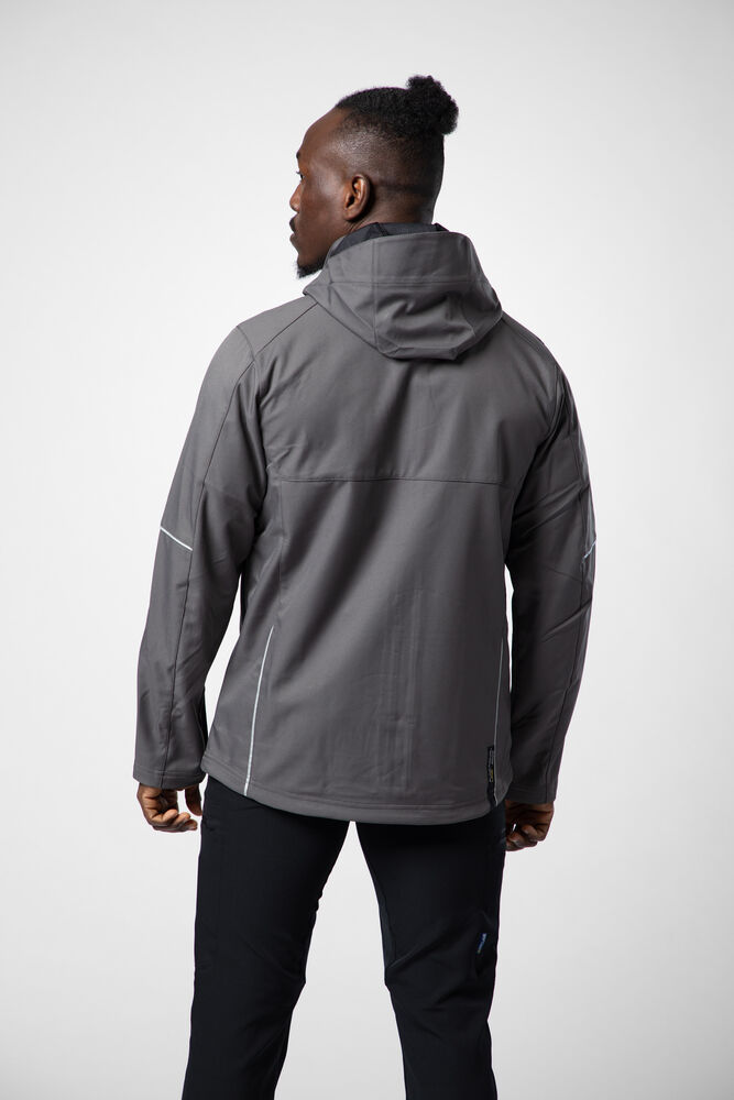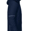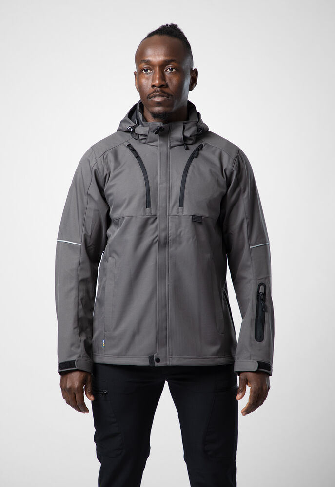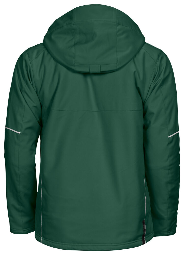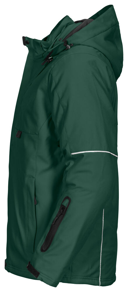 Vattert herrejakke i et funksjonelt materiale som er vind- og vannavvisende. Quiltet vattert fôr. To brystlommer, den venstre med innvendig telefonlomme. Feste for ID-kortholder. To sidelommer. En lomme på venstre erme. Innvendig lomme med hull tilpasset for handsfree på venstre side. Ventilasjonsglidelås under ermene. Snøring i midjen. Regulerbar ermavsluttning. Forlenget rygg for bedre komfort. Reflekspiping på erme og rygg. Avtagbar og regulerbar hette. Fleecefôret krage for ekstra komfort.