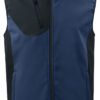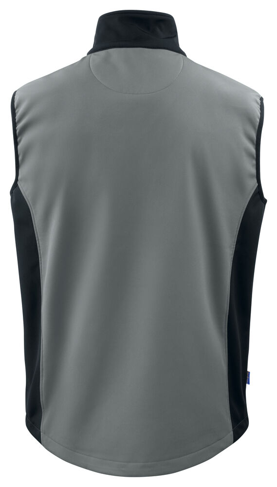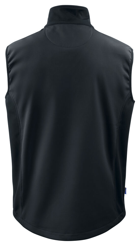 Softshellvest med god pusteevne. To sidelommer med glidelås. Vertikal brystlomme med glidelås og skjult brakett for feste av ID-kort. To innerlommer. Glidelås i front med innvendig vindklaff og hakebeskyttelse for å forhindre gnaging. Jakken er justerbar med snøring i nederkant.