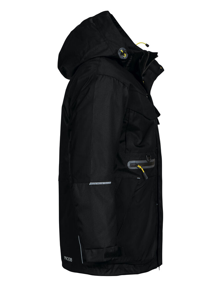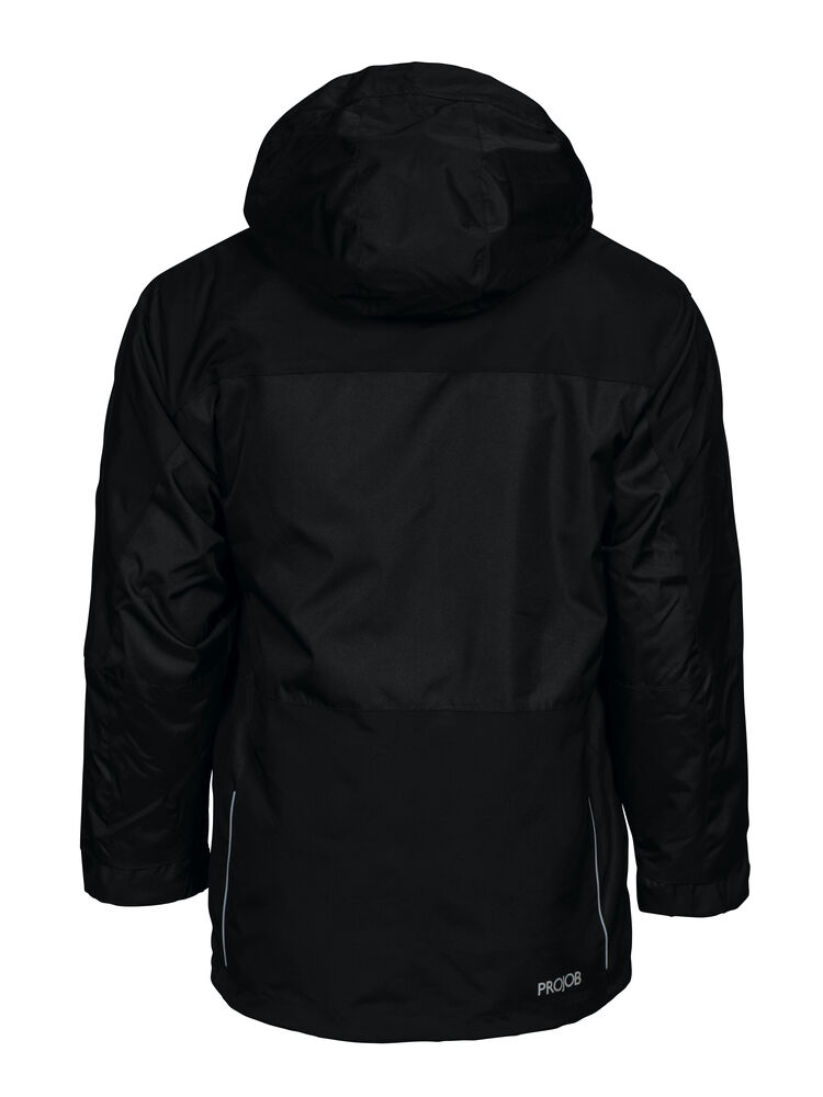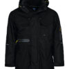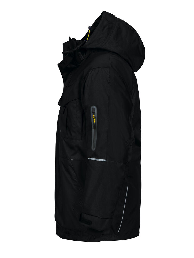 Vind og vanntett parkas med fôr og avtagbar hette som også kan puttes bort. Regulerbar snor i enden av jakken. To brystlommer med klaff hvorav venstre lomme har plass til telefon og penn. To laminerte lommer med vanntett glidelås på venstre overarm og en under høyre brystlomme. Sidelommer i fleecefôr med klaff og glidelås. Dobbel vindklaff i front med toveis glidelås. Forbøyde og regulerbare armer. Avtagbar quiltet fôr/jakke som brukes separat.