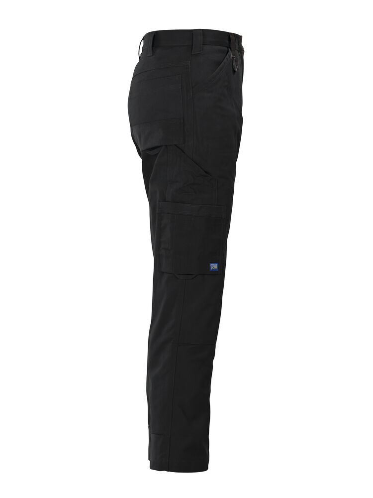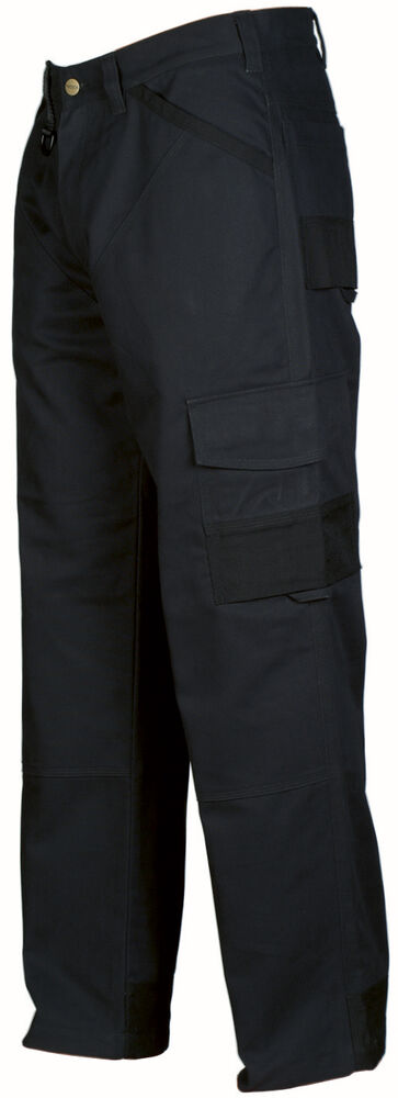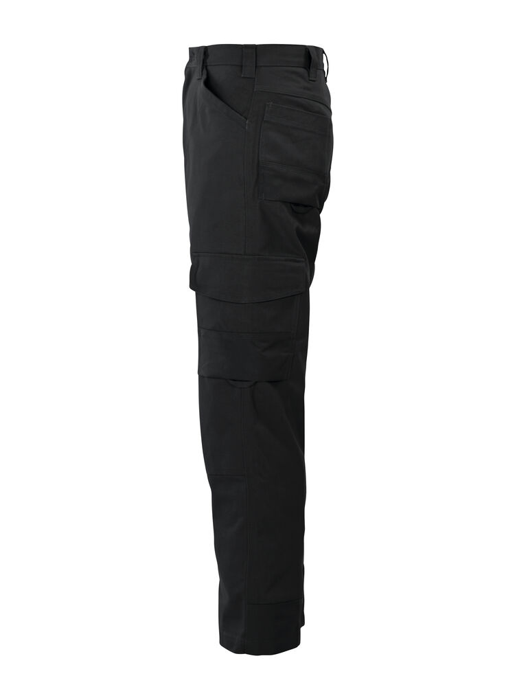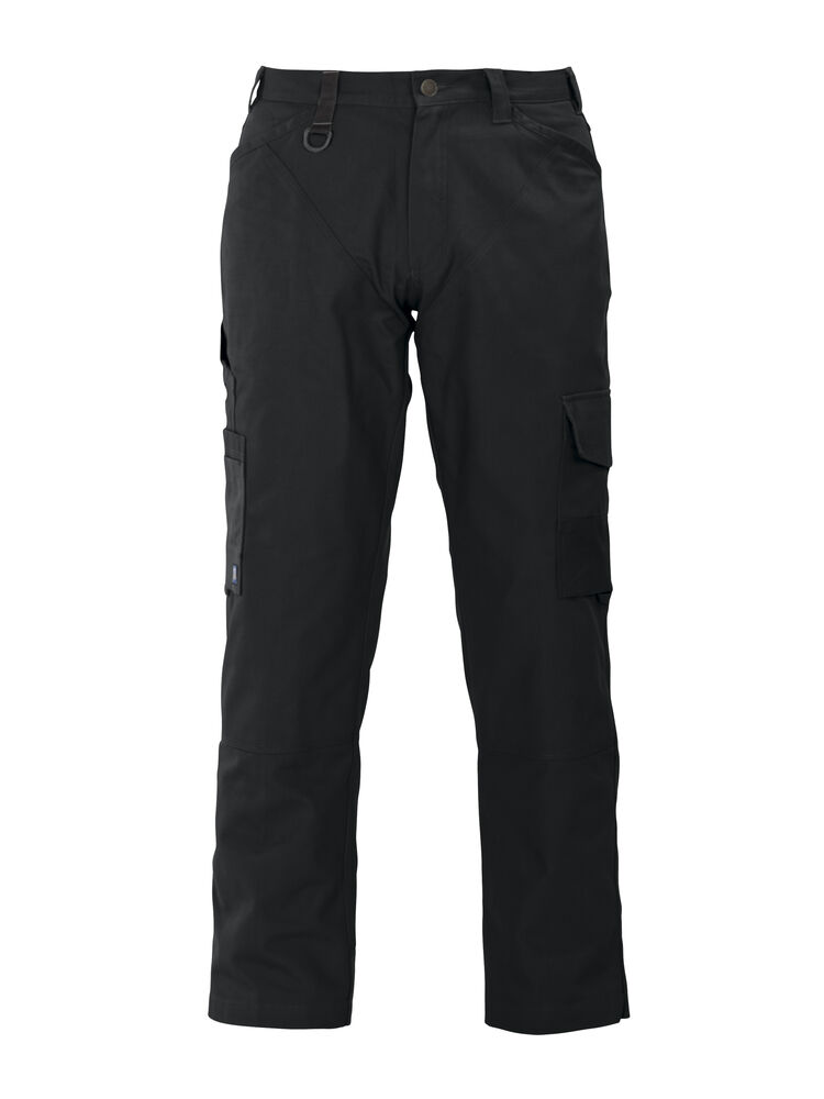 Midjebukse med slett front og jeansfølelse. Forsterket med dobbelt stoff over lårene. To dype frontlommer. D-ring i front. Jeanskryss bak, to utenpåliggende baklommer. To benlommer. Venstre benlomme har klaff og mobillomme på innsiden. Høyre Benlomme har plass til mobiltelefon, penner og tommestokk. Cordura®-forsterkninger på forsiden av sidelommene, tommestokklommen, nedre del av bak og benlommer, samt benavsluttning. Bak- og benlommer er tilpasset for Inbags.