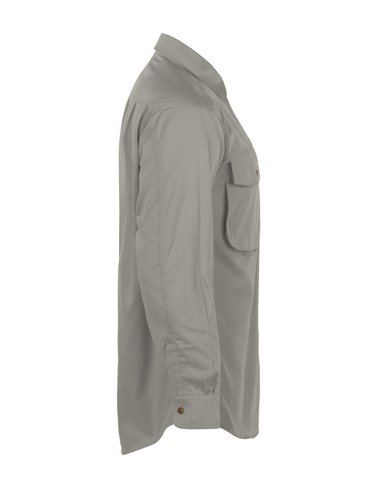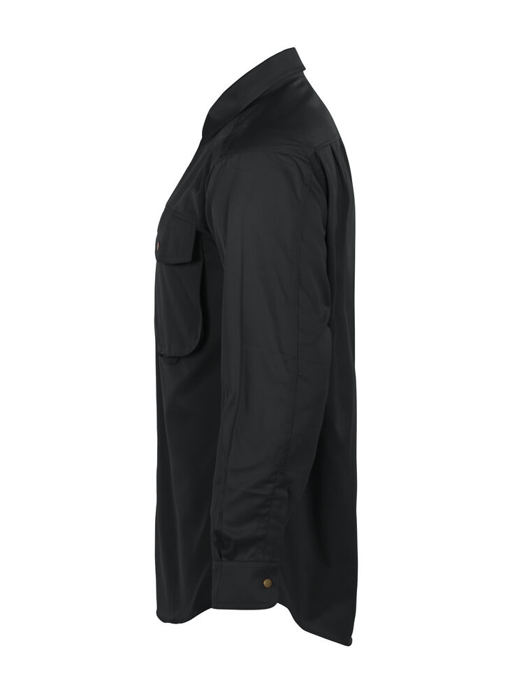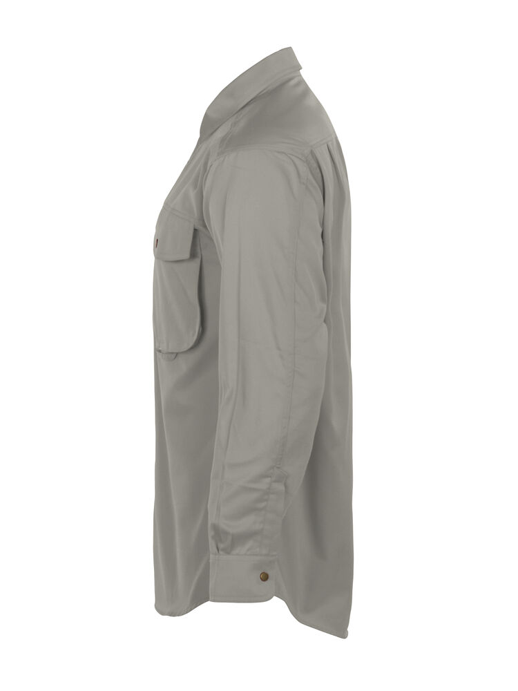 Skjorte med trykknapper i front. To store brystlommer med klaffer. Justerbare mansjetter med to trykknapper. Ermer designet for optimal bevegelsesfrihet. Doble bærestykker og to folder bak.