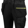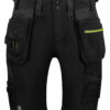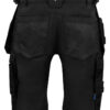 Stretchshorts for maksimal bevegelsesfrihet. Moderne passform. Fireveis stretch over lår og bak, sidene øverst er ikke i stretch for å gi bedre stabilitet til buksene. Ventilasjonskanaler med glidelås langs begge bena, også ventilasjon i livet. Benlommer, på venstre side med plass til verktøy og penn, i tillegg til en mobiltelefonlomme med magnetlås og brakett for ID-kortholder. På høyre side, tommestokk- og verktøylomme med knivknapp. Sidelommene er forsterket øverst med Cordura® for å kunne feste målebånd. Braketter for verktøyholdere. Mulighet for å feste MOLLE-systemer på begge sider.