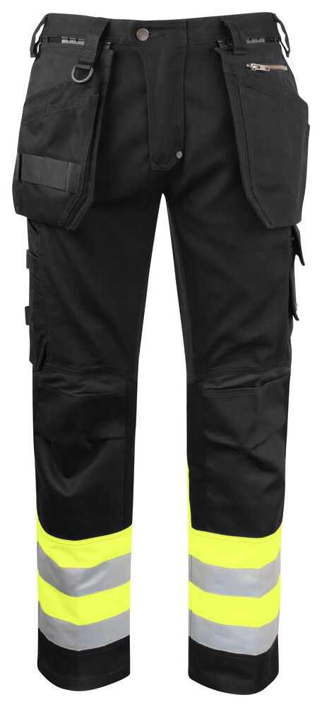• Detachabale holsterpockets, Folding rule pocket, Holster pockets, Pockets for knee protectors, Stretch panels