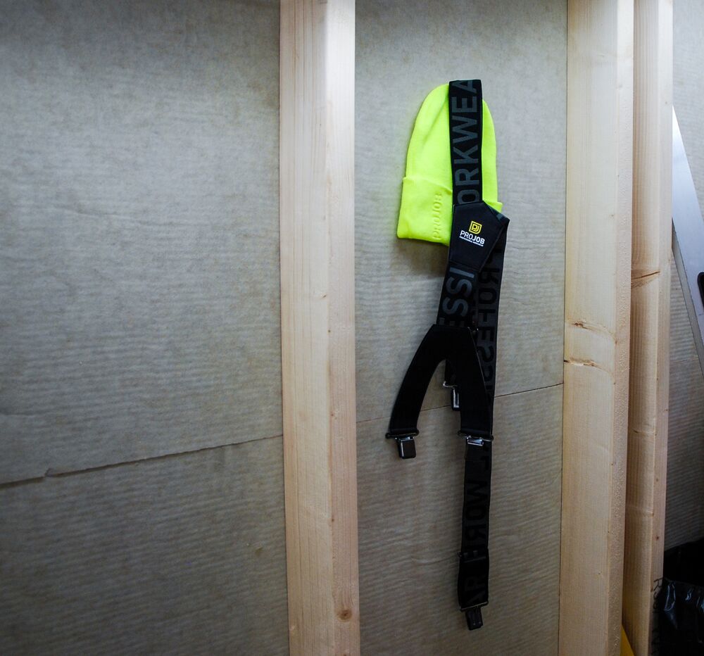 Bukseseler i stretch, som følger kroppens bevegelser. Slitesterke metallspenner både foran og bak som holder arbeidsbuksen på plass.