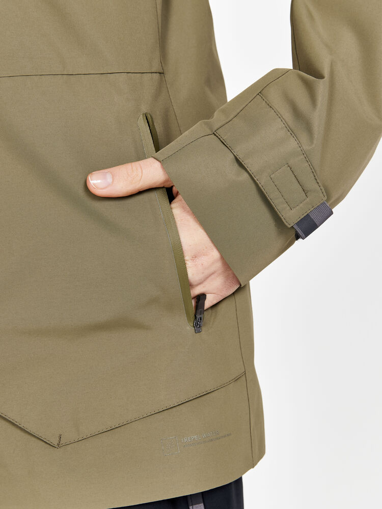 ADV Bike Ride Hydro Jacket er en vanntett pendlerjakke med teipede sømmer som gir god værbeskyttelse når du sykler til og fra jobb. Denne funksjonelle regnjakken er laget av et teknisk, vind- og vanntett materiale og er utstyrt med hjelmkompatibel hette samt forlengede ermer og forlengelse i bakenden for ekstra beskyttelse mot fuktighet. Sykkeljakken har et avslappet design som gjør den perfekt selv som hverdagsjakke i regn og blåst.