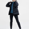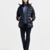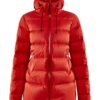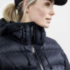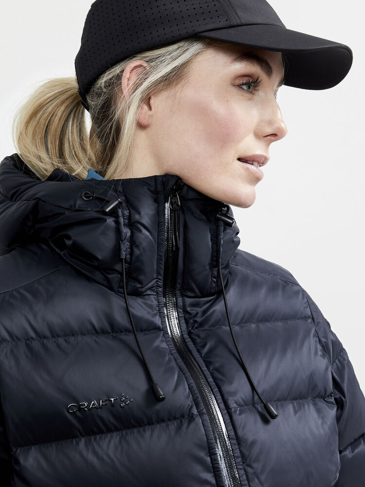 Varm dunjakke til dame, laget av resirkulert materiale. Dunjakken er designet for å holde deg god og varm på kalde dager. Jakken har høy krage, vannavvisende 2-veis glidelås i front, to sidelommer med vannavvisende glidelåser, innerlomme med glidelås, justerbar snøring i nederkant og hette, samt mansjetter i ermene som holder kald vind ute.