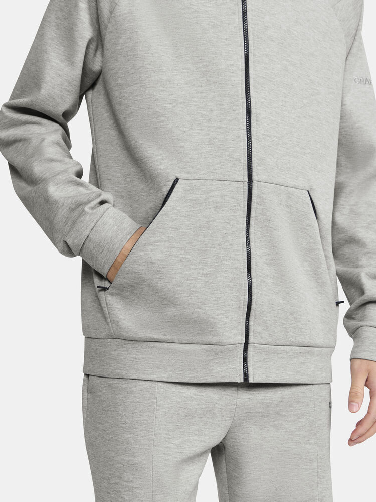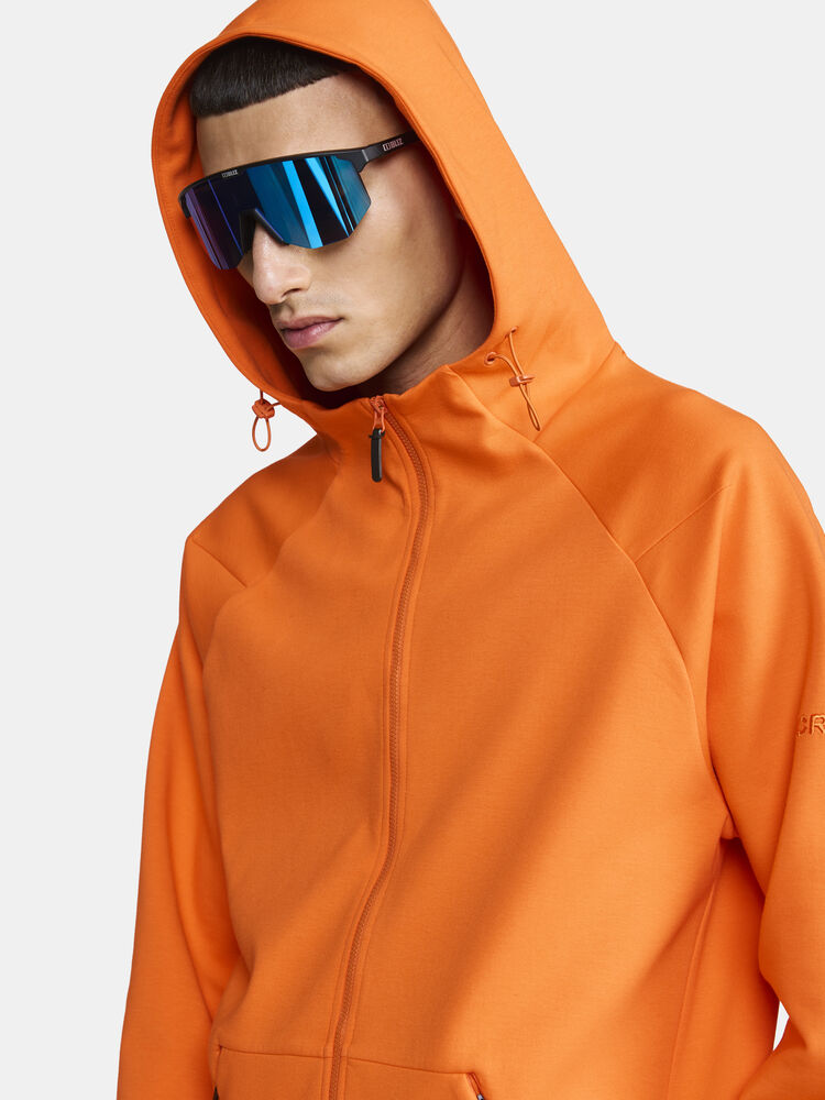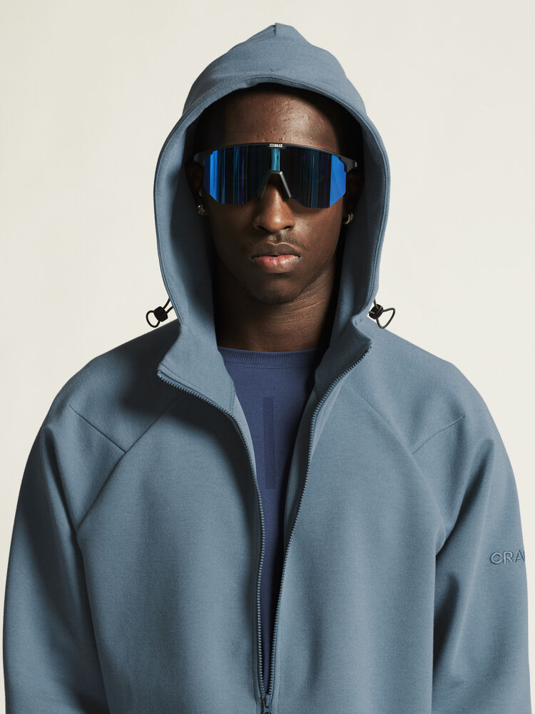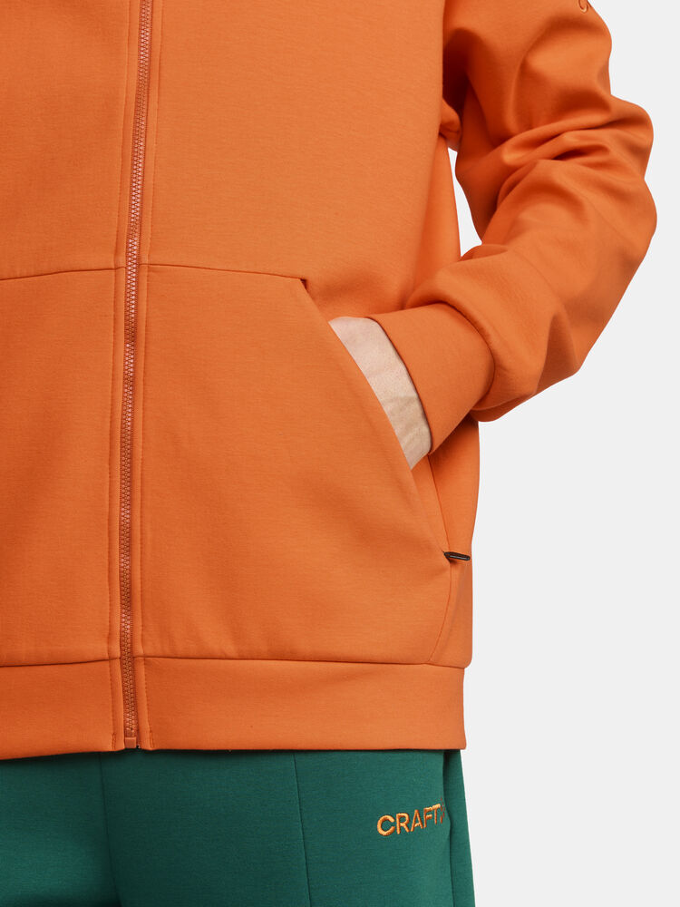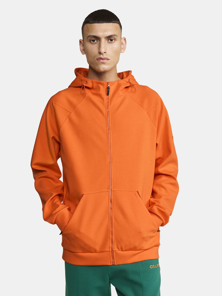 Moderne hettejakke laget av et premium-materiale med myk bomull på utsiden og myk polyester på innsiden. Resultatet er et svært behagelig plagg, perfekt på vei til og fra trening – så vel som til uformelle hverdagsaktiviteter. I tillegg har hettejakken hel glidelås i front, justerbar hette, raglanermer, samt kengurulommer med glidelås. Hettejakken har et minimalistisk design, og kan enkelt kombineres med en rekke andre sportsplagg og treningsklær. Den broderte logoen på venstre ermet forsterker plaggets premium-følelse.