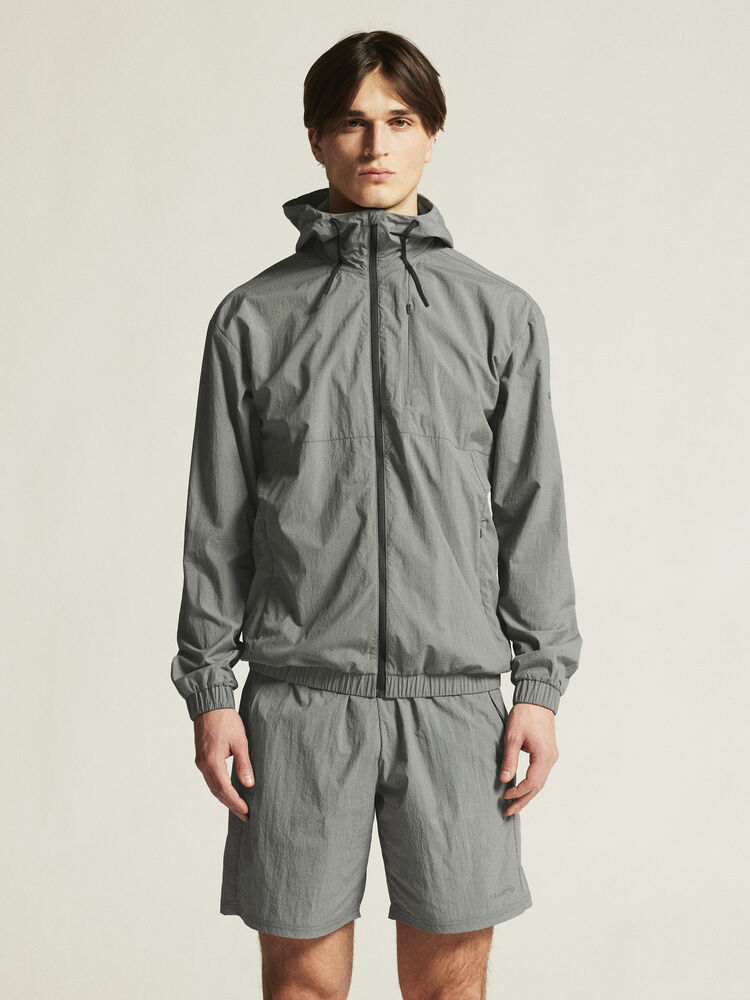 Denne allsidige vindjakken er laget av et tynt, vevd stoff og har et funksjonelt meshfôr som gir utmerket fukttransport og dermed optimal komfort. Et ergonomisk design gir full bevegelsesfrihet, noe som gjør jakken egnet til både trening og hverdagsbruk. Plagget har også hette med justerbar snøring, samt to skjulte lommer med glidelås som sikrer oppbevaring av nøkler, kredittkort m.m.