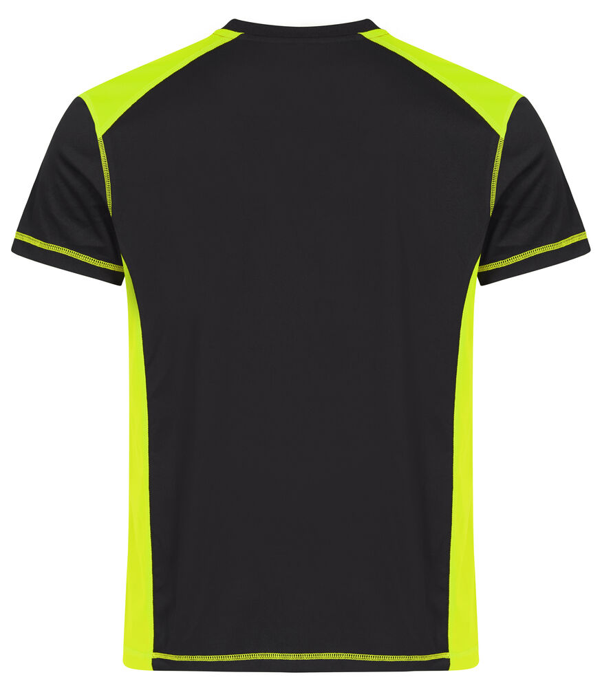Kontrastfarget T-skjorte som gir økt synlighet. Ribb, kontrastsøm og elastan i kragen. Polyesteren som er brukt i t-skjorten er resirkulert. Forsterket nakketeip og en lett avtagbar etikett for rebranding.