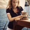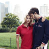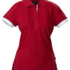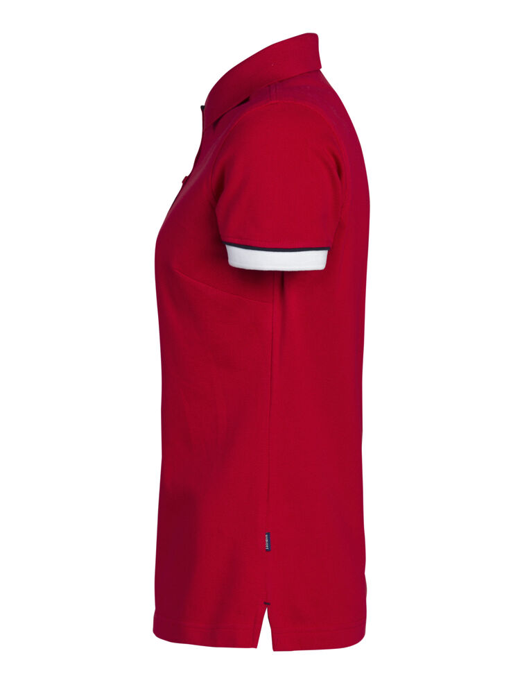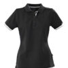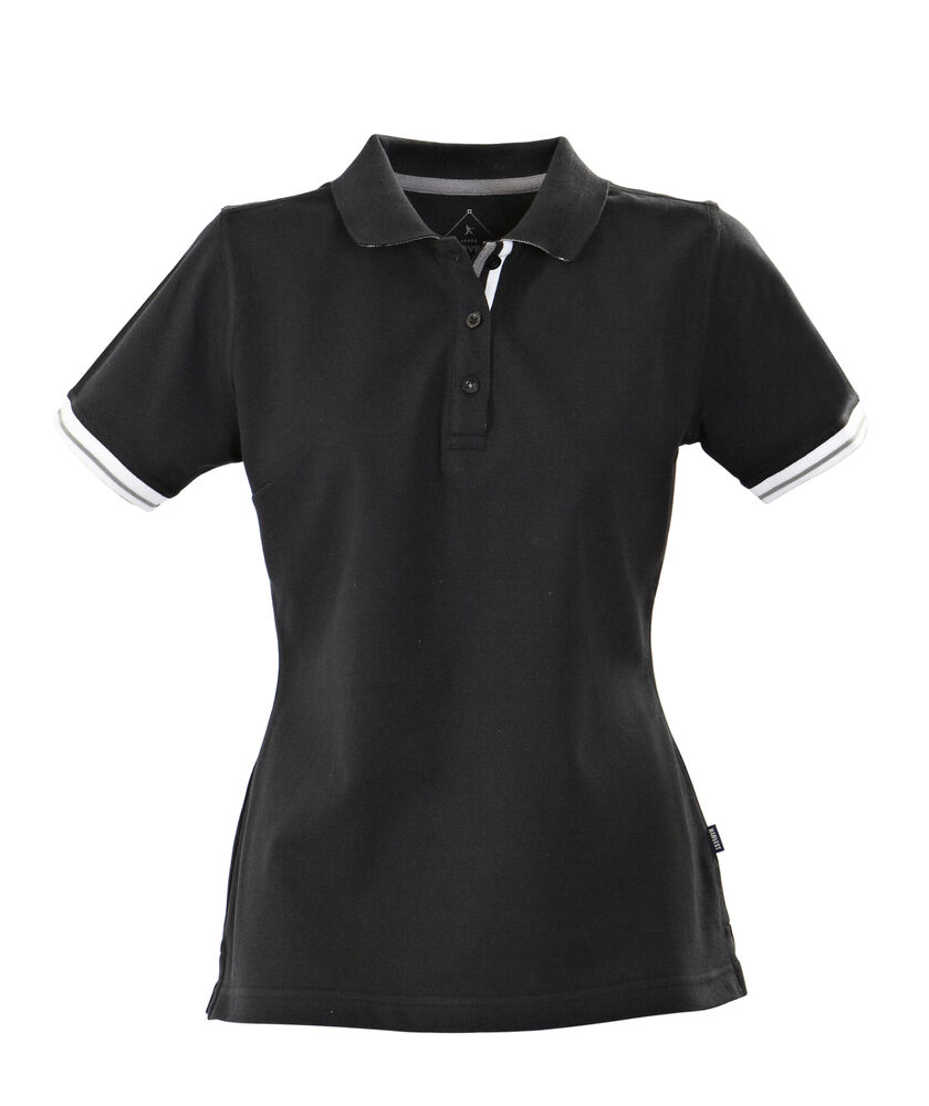 Pique til dame med kontrastfarger på undersiden av kragen, i stolpen og i ribb på ermene. Halvmåne i nakken, samt nakkebånd.