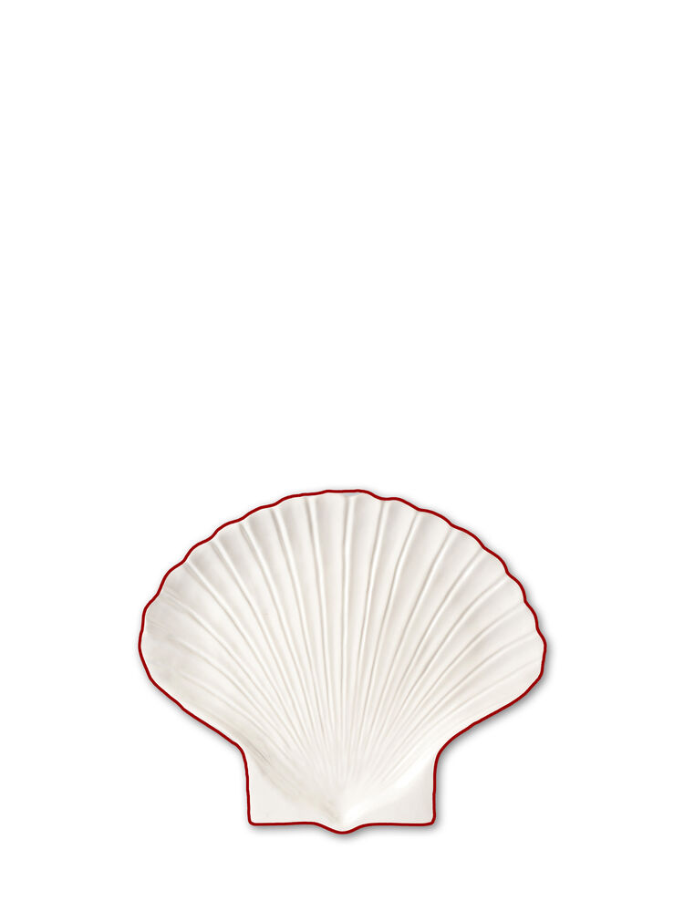 Asjett Shell er et resultat av havets dybde, noe som gjenspeiles i Byons lekne kreasjon. Disse små skjellformede fatene er perfekte som forrettsfat, men kan også brukes på sminkebordet for å holde såpe eller som et sted å legge smykker før du legger deg for natten. Asjetten har en blank finish og en kant i lidenskapens farge, rød, som liver opp enhver setting. Laget av dolomitt. Det er flere matchende deler i samme serie. Størrelse 16x13x2 cm. Design Byon Studio.