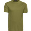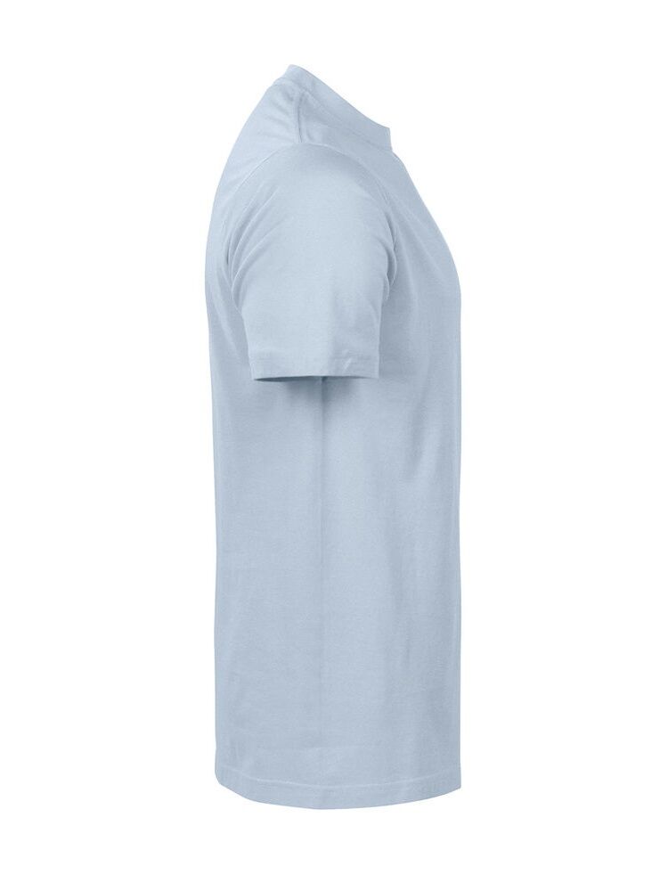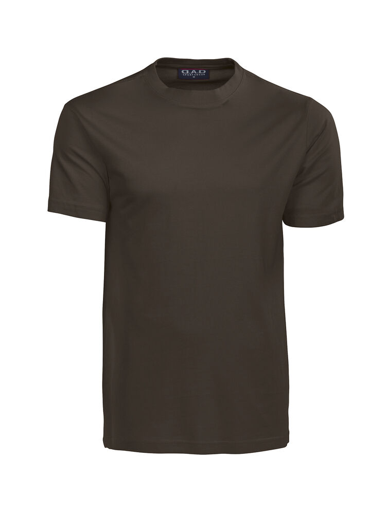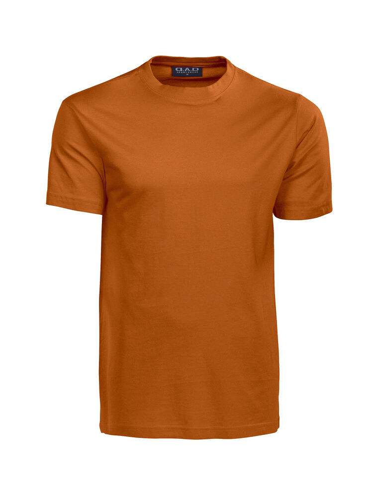 T-skjorte i komfortabel singeljersey. Nakkeribb og forsterket nakkebånd fra skulder til skulder. Herremodell i klassisk rundstrikket passform. Damemodellen har sidesøm og innsvinget passform.