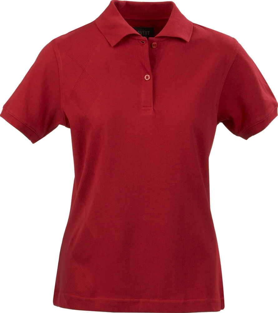 Dame poloskjorte i single jersey enzymbehandlet kjemmet bomull av Pima-kvalitet. Innvevd rutete mønster på høyre side av bryst. Teipet nakkesøm. Flatstrikket krage og ermavslutning.