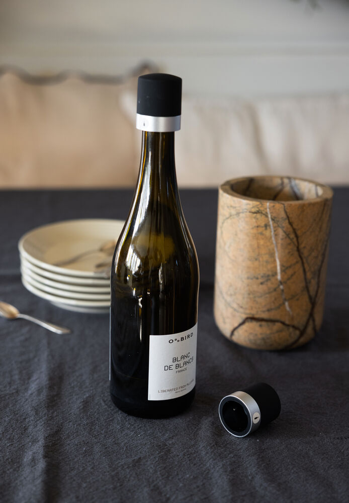 To tettsittende korker i aluminium og silikon for flasker med vin, champagne eller andre leskedrikker. En fin gave å gi bort. For er det ikke slik at du alltid savner en kork når det trengs?