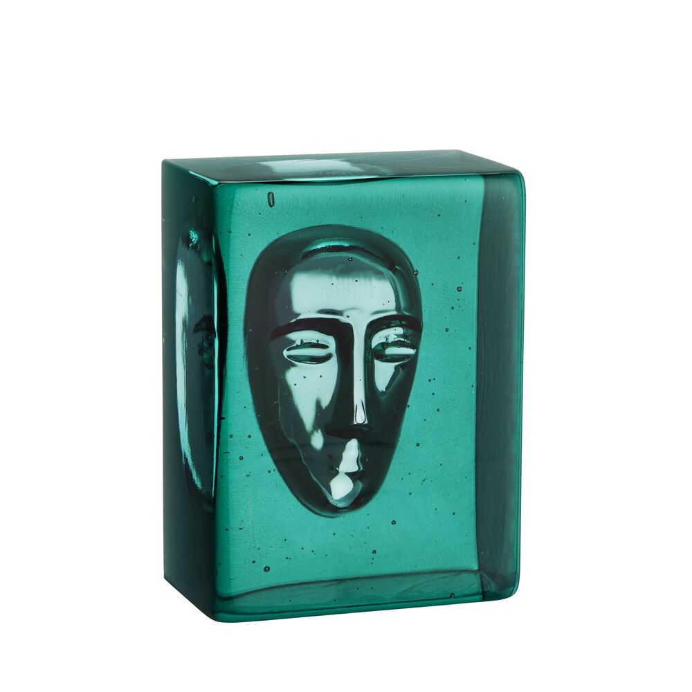 BV Azur Man Petrol blå, signert Bertil Vallien, er en del av Kosta Boda Artist Collection. Gjenstanden i petroliumblå smeltedigelfarge er støpt i grafittform. Formen har et avtrykk av et av Bertils Valliens karakteristiske ansikter.
