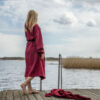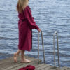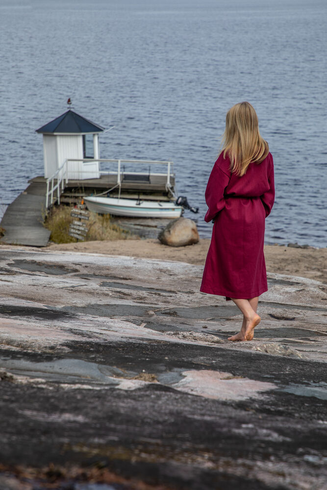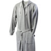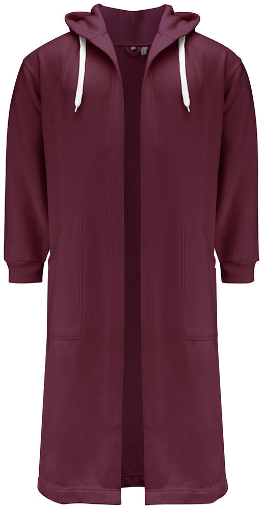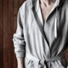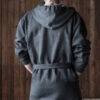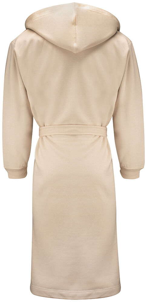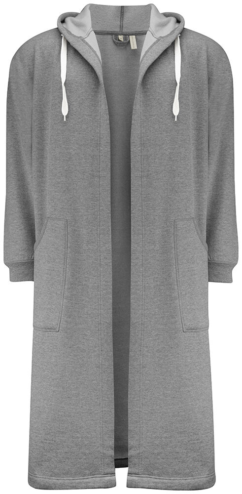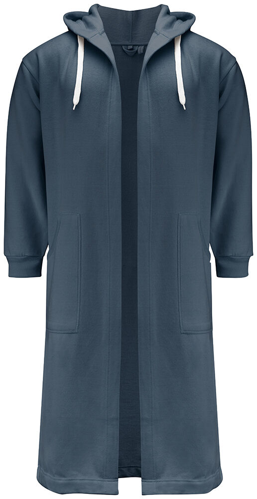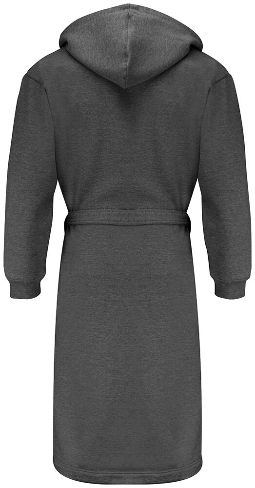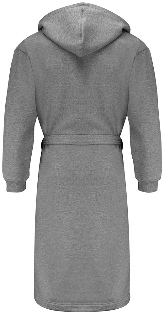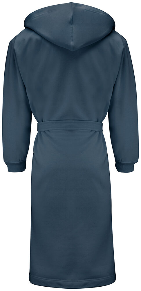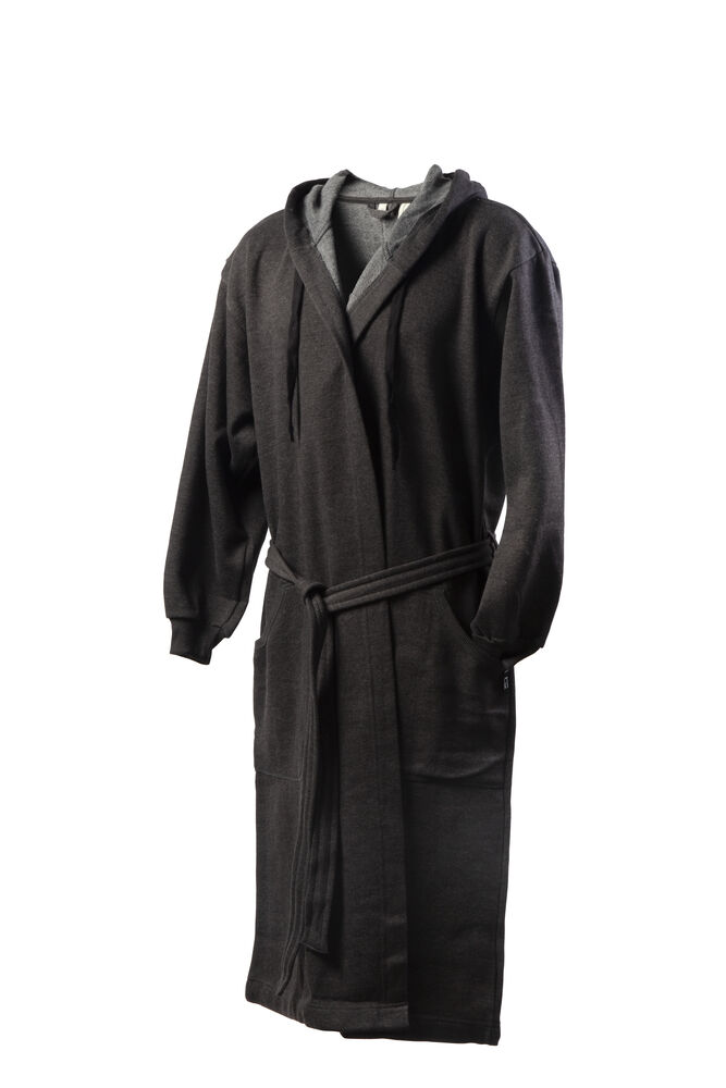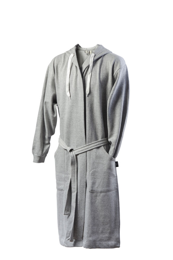 Behagelig morgenkåpe i collegestoff. Fine kontrastsømmer ved lommene og mansjett i ermene.