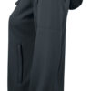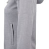 Hettejakke med ton-i-ton glidelås. To sidelommer med glidelås og en glidelåslomme på ermet. Snor i hette, herringbone nakkebånd og ribb i nedekant og i ermavslutning. Tilpasset for hodetelefoner. Spun dyed. Avtagbar etikett i nakken.