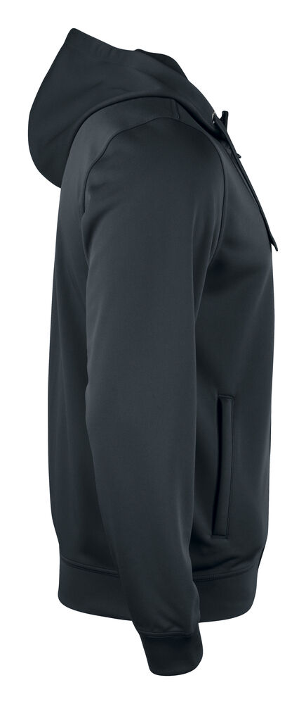Hettejakke med ton-i-ton glidelås. To sidelommer med glidelås og en glidelåslomme på ermet. Snor i hette, herringbone nakkebånd og ribb i nedekant og i ermavslutning. Tilpasset for hodetelefoner. Spun dyed. Avtagbar etikett i nakken.