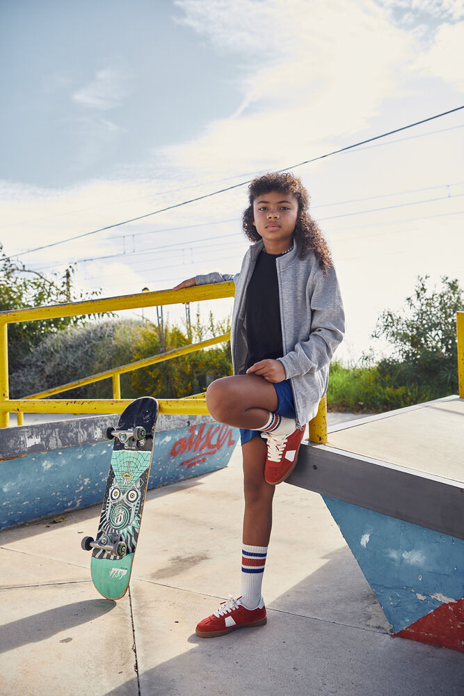 Sweatshirt cardigan i juniormodell med glidelås i front. Ribb i mansjett og nederkant. Tilpasset for hodetelefoner. Produktet er barnesikkert.
