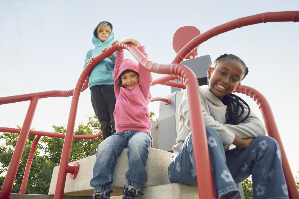 Sweatshirt med hette til junior med ribb i mansjett og nederkant. Lomme i front. Tilpasset hodetelefoner. Produktet er barnesikkert.