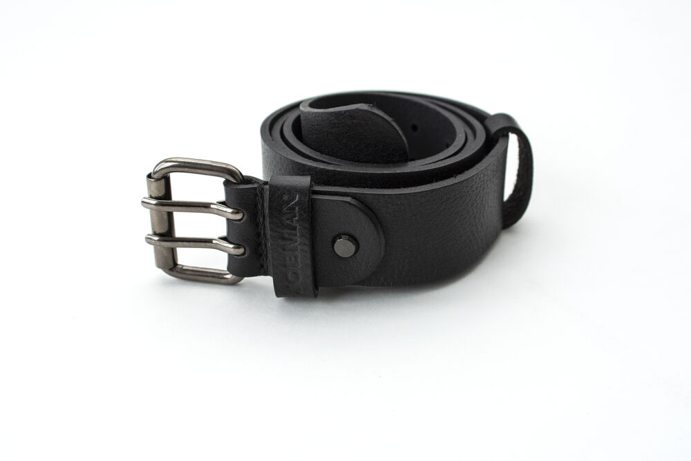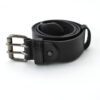 Belte i skinn, 36 mm bredt. Kraftig spenne med stålstift.