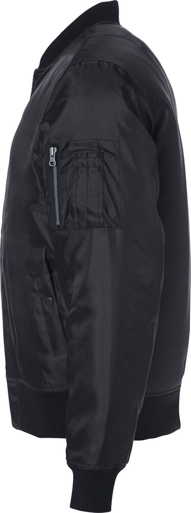 Unisexjakke i "bomber" stil. Sidelommer med knapp og armlomme med glidelås og ekstra lomme på utsiden av lommen til penner. En innvendig lomme med glidelås. AC coating og SBS glidelåser.