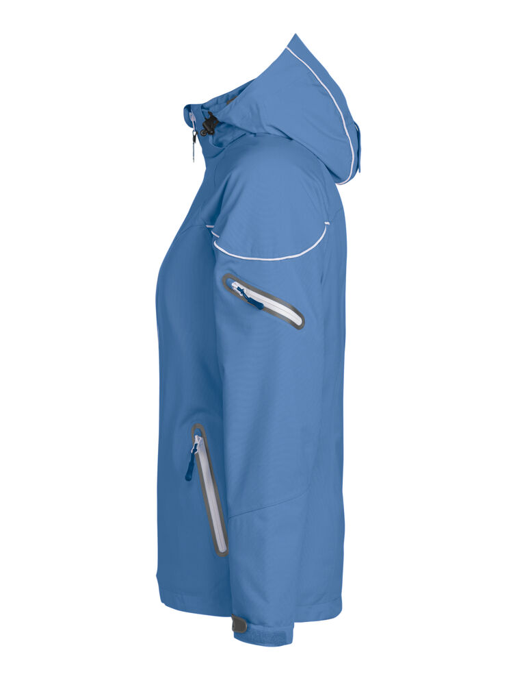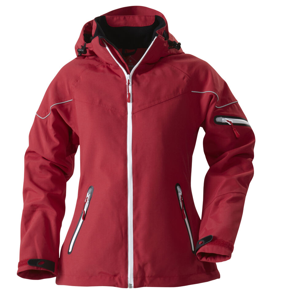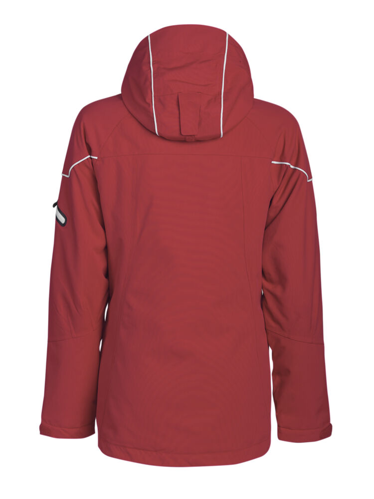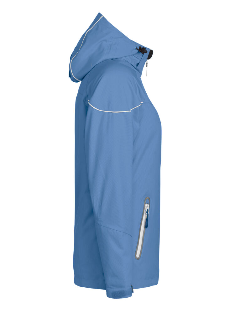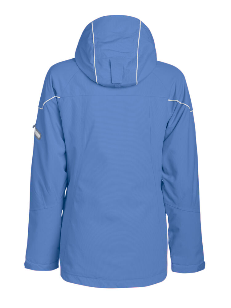 Vind- og vanntett funksjonsjakke i sportslig modell. Teipede sømmer, vanntette glidelåser og lett vattering. Regulerbar, avtagbar hette, samt ventilasjon under ermene. Elastisk snorstrammer i hette og nederkant, samt regulerbar mansjett. Damemodell. Wp 3000/ Mvp 3000