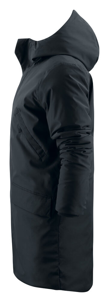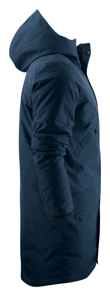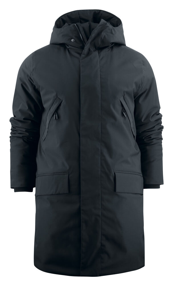 Vinterparkas med en deilig dunfølelse. Yttermateriale i 100 % polyester med membran. 5000 WP/ 5000 Mvp. Vannavvisende Bionic-finish ECO. Vattert med gjenvunnet polyester (Bluesign), 160 gsm (2,6 – 2,8 Clo) i ermene. Teipede sømmer, toveis glidelås i front og regulerbar snor i hette og midje. Metallglidelås og magnetknapper i klaff og lommer. Ribbestrikket mansjett inne i ermet og regulerbar ermavslutning med trykknapper.