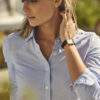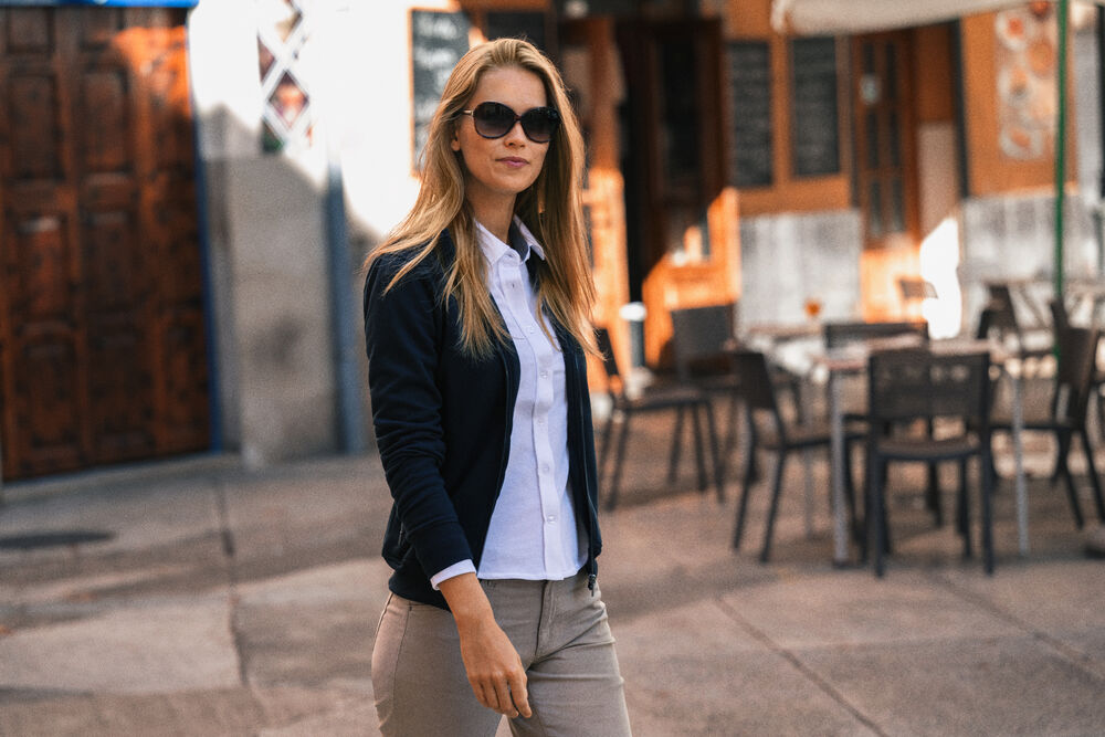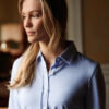 Jersey skjorte med oxford look. Vevde detaljer i krage og sidesplitt. Button down krage på herremodellen. Perlemors-lignende knapper. Justerbare mansjetter.