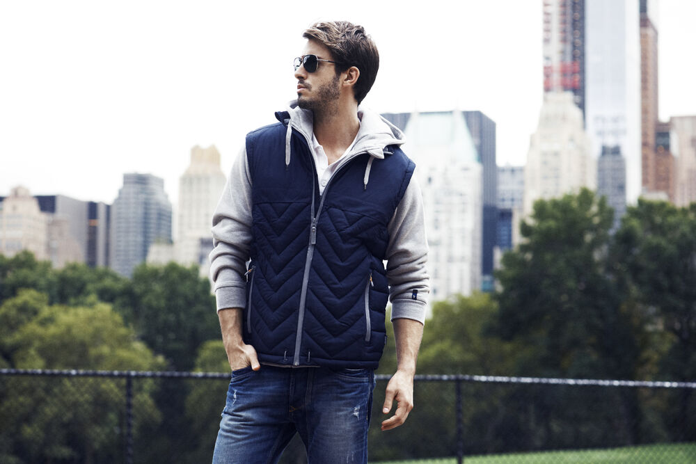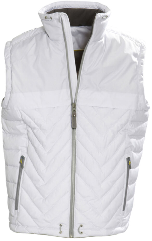 Vannavvisende vest med vanntette glidelåser, elastisk snor i nederkant og i krage. Fleecefôr i lommer og i krage. To innerlommer med glidelåser.