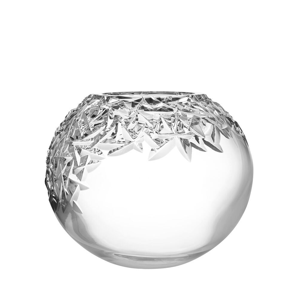 Carat-serien er basert på en moderne tolkning av tradisjonell glassliping som har gjort Orrefors verdenskjent. Den uregelmessige geometrien skaper vakre refleksjoner av lys i krystallglasset. Carat globevase har et mønster på toppen som kontrast til det glatte glasset. Vasen passer for et bredere spekter av blomster, da kuleformen lar stilkene ta plass. Designet av Lena Bergström.