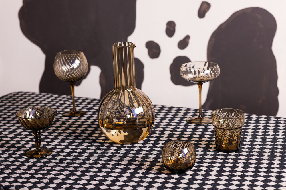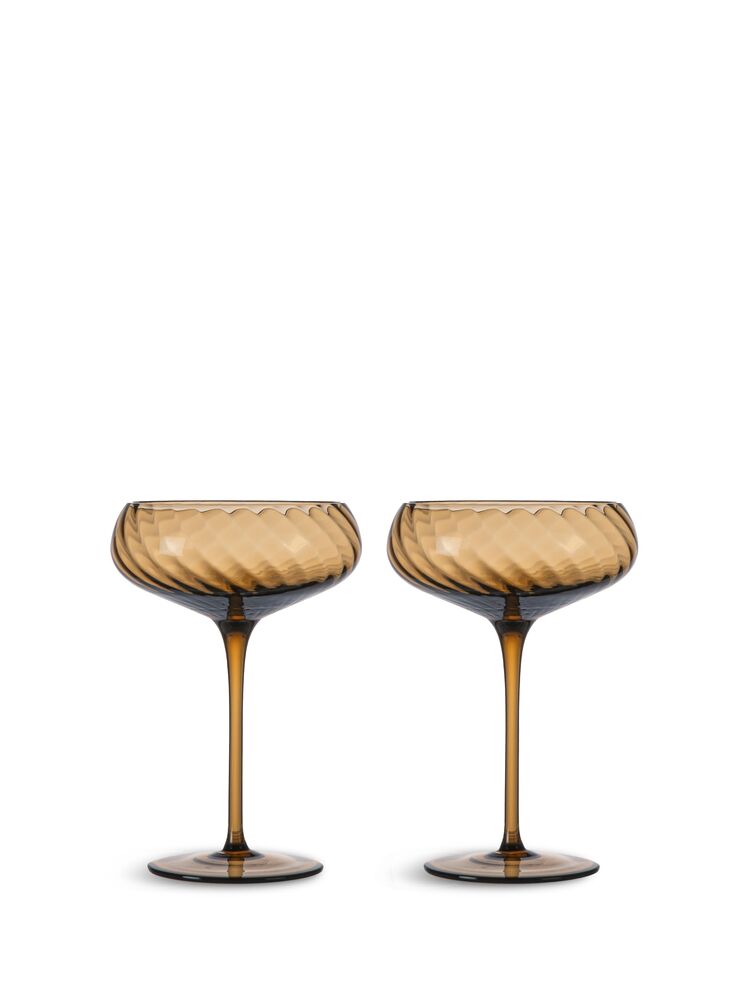 Opacity Champagne coup er designet for den perfekte opplevelsen – på bordet, i hånden og mens du drikker. Det er en tynn champagne coupe med med et vakkert virvlet glassmønster i farget glass for en morsommere effekt. Fargen er en vakker brun farge som kan matches med alt. Kan med fordel også benyttes til dessert eller morgenjuice for en mer festlig følelse. Et design som har den perfekte kontrasten mellom luksus og selvsikkerhet. I Opacity brown-familien finner du også vinglass og runde vannglass. Design Byon Studio. Leveres i 2-pakninger i Byon boks.