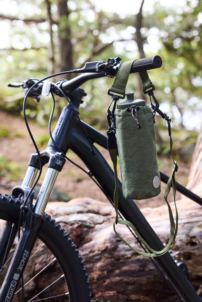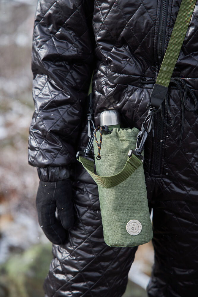 Denne lille kjølevesken laget av rPET (resirkulerte PET-flasker) er perfekt å henge over skulderen på vei til pikniken eller til eventyret i parken. Rommer en 50 cl vannflaske eller noen bokser brus. Vesken har en vakker skoggrønn farge, lukkes med snøring og har justerbar skulderrem.