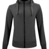 Hettejakke med hel glidelås, to glidelåslommer i front, samt to innerlommer. Kontrasterende mesh i hetten. 2×2 ribb med stretch i nederkant og ermavslutning. Ton-i-ton flatlocksømmer. Tilpasset for hodetelefoner.