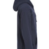 Hettegenser med kengurulomme med praktisk løsning for mobiltelefon. Kontrasterende mesh i hette. 2×2 ribb med stretch i nederkant og i ermavslutning. Ton-i-ton flatlocksømmer.