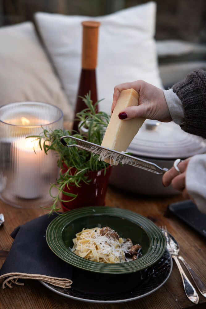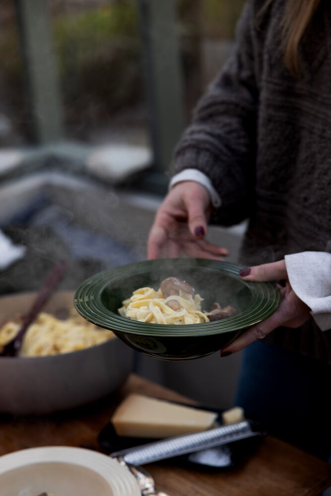 Oppdag Coffee & More dyp tallerken i grønt – en del av den vakre serien skapt i samarbeid med Margot Barolo. Denne dype tallerkenen, med sitt karakteristiske relieff og varme farge, tilfører en følelse av trygghet til hvert måltid. Mønstrene og linjene pryder tallerkenen og gir et harmonisk uttrykk, noe som gjør den perfekt for supper, pasta eller salater. Et enkelt, men stilig valg som løfter borddekkingen og blir en naturlig favoritt i ethvert hjem. En del av Coffee & More-serien. Tåler oppvaskmaskin og er matsikker.