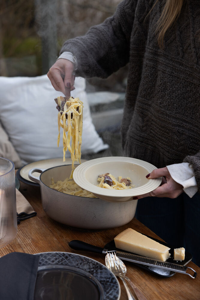 Oppdag Coffee & More dyp tallerken i beige – en del av den vakre serien skapt i samarbeid med Margot Barolo. Denne dype tallerkenen, med sitt karakteristiske relieff og varme farge, tilfører en følelse av trygghet til hvert måltid. Mønstrene og linjene pryder tallerkenen og gir et harmonisk uttrykk, noe som gjør den perfekt for supper, pasta eller salater. Et enkelt, men stilig valg som løfter borddekkingen og blir en naturlig favoritt i ethvert hjem. En del av Coffee & More-serien. Tåler oppvaskmaskin og er matsikker.