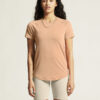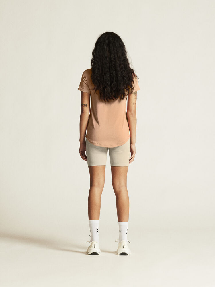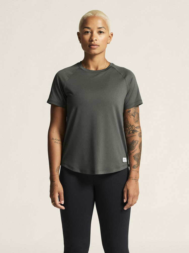 Denne allsidige trenings-t-skjorten er designet for ultimat komfort. Den er laget av en elastisk polyesterblanding med en myk overflate, og gir en luksuriøs, behagelig fornemmelse og utmerket regulering av kroppstemperaturen. Den kommer også med raglan-ermer og en avrundet bunn for en feminin silhuett, som legemliggjør det utsøkte håndverket i hver detalj.