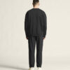 • Ribbestrikket hals, mansjetter og fald nederst