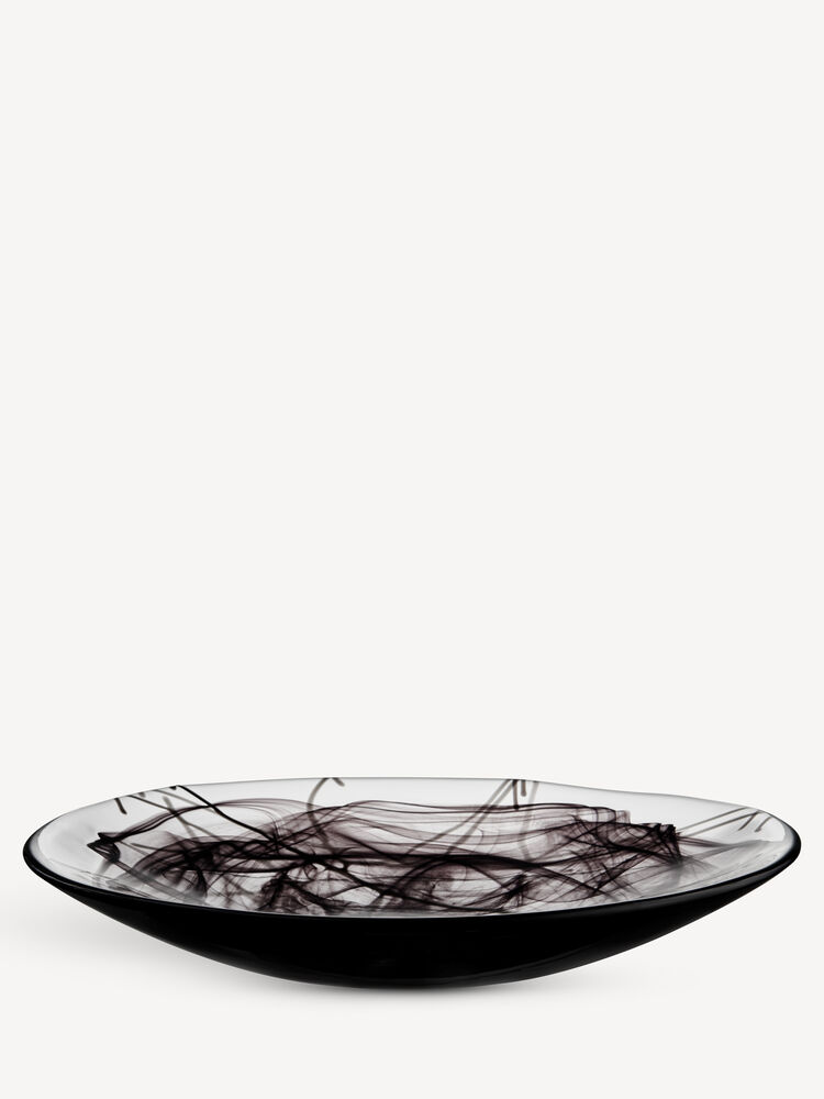 Contrast fra Kosta Boda er laget ved hjelp av en teknikk som kalles sentrifugering, som skaper et slør av farger inne i glassmassen. I kombinasjon med fargede glasspinner som tilsettes i prosessen, blir hvert produkt unikt. Det store fatet i serien er perfekt til servering av fingermat eller som fruktfat. Design Anna Ehrner.