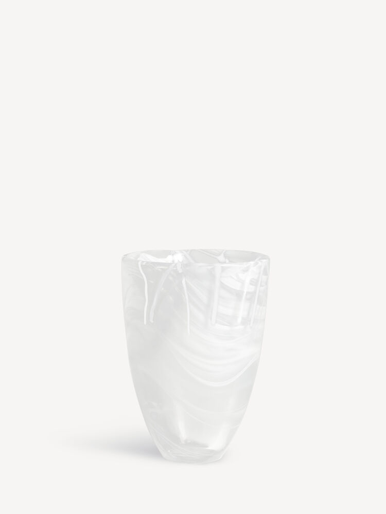 Contrast-serien fra Kosta Boda er produsert ved hjelp av en teknikk som kalles sentrifugering. Teknikken ble oppfunnet i det smålandske glassriket på 1950-tallet, og skaper et fargeslør inne i glassmassen. I kombinasjon med fargepulver og glasspinner som tilsettes under prosessen, er hvert produkt unikt. Den helhvite vasen er vakker alene – men blir enda bedre fylt med blomster! Design Anna Ehrner.
